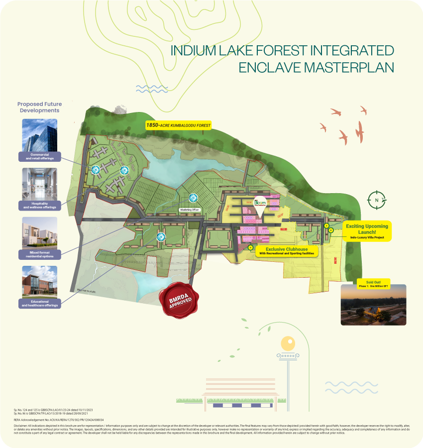 Nestled between 2 lakes and a forest. Located within the Indium Lake Forest Integrated Enclave. 2 km from the Bengaluru-Mysuru Expressway. Near schools, colleges, hospitals, and industrial areas.